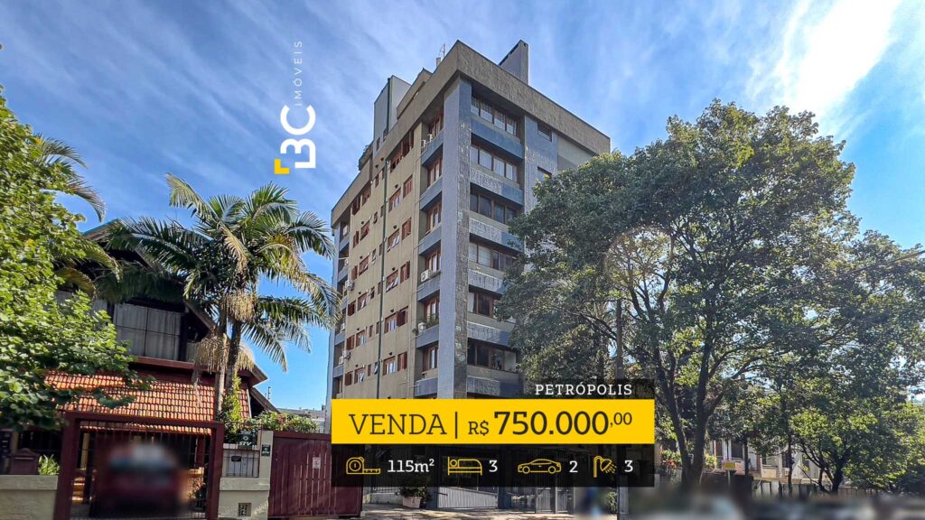 BC Imóveis vende apartamento semimobiliado de 3 dormitórios, 2 vagas cobertas, no bairro Petrópolis.
