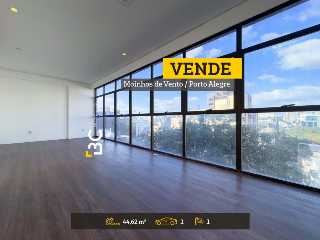 BC Imóveis vende sala comercial de 44,62 m² com vaga na rua Doutor Florêncio Ygartua, no bairro Moinhos de Vento.