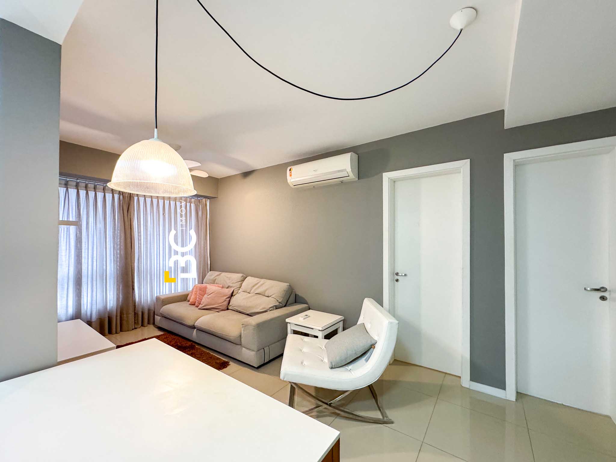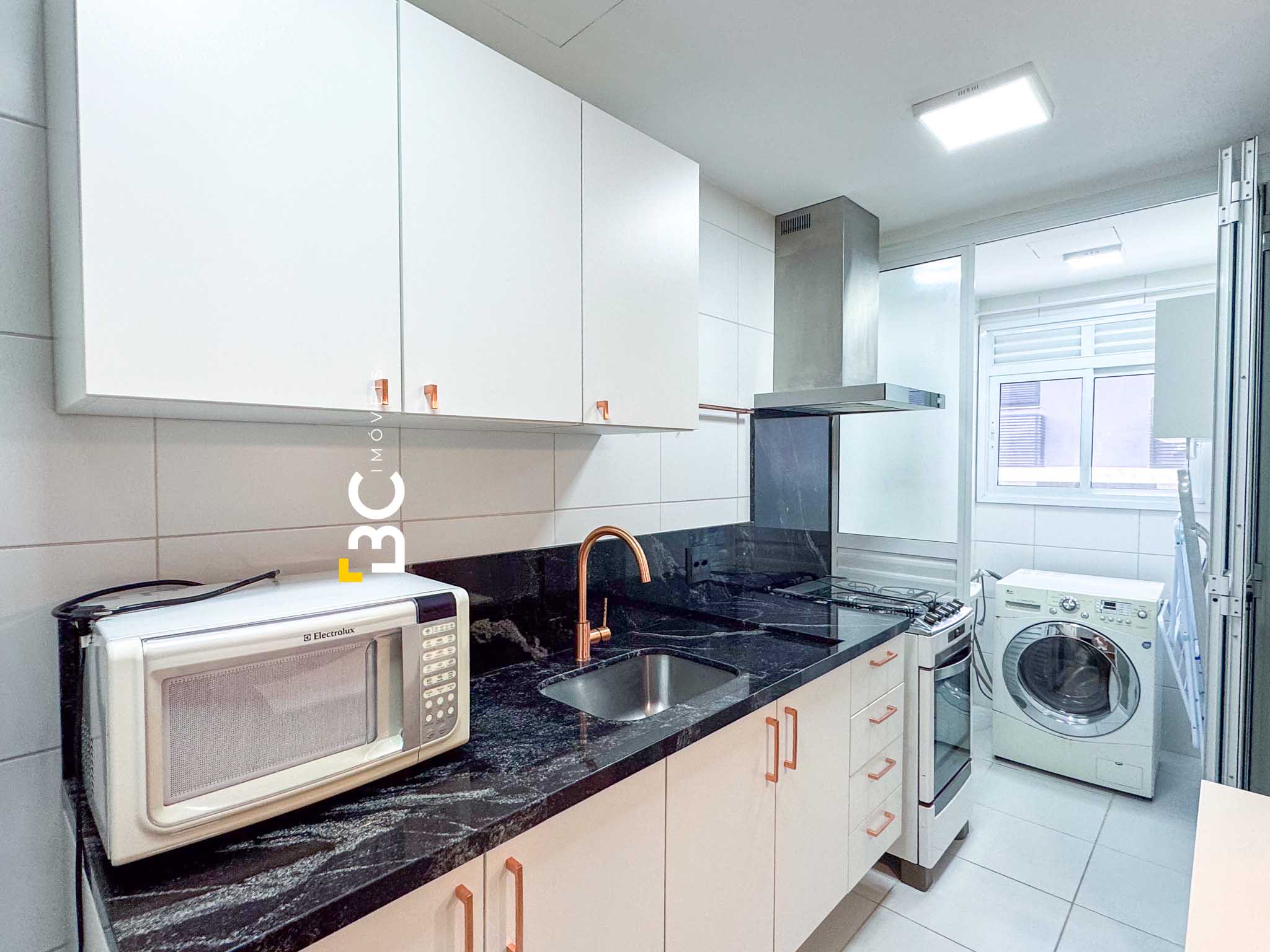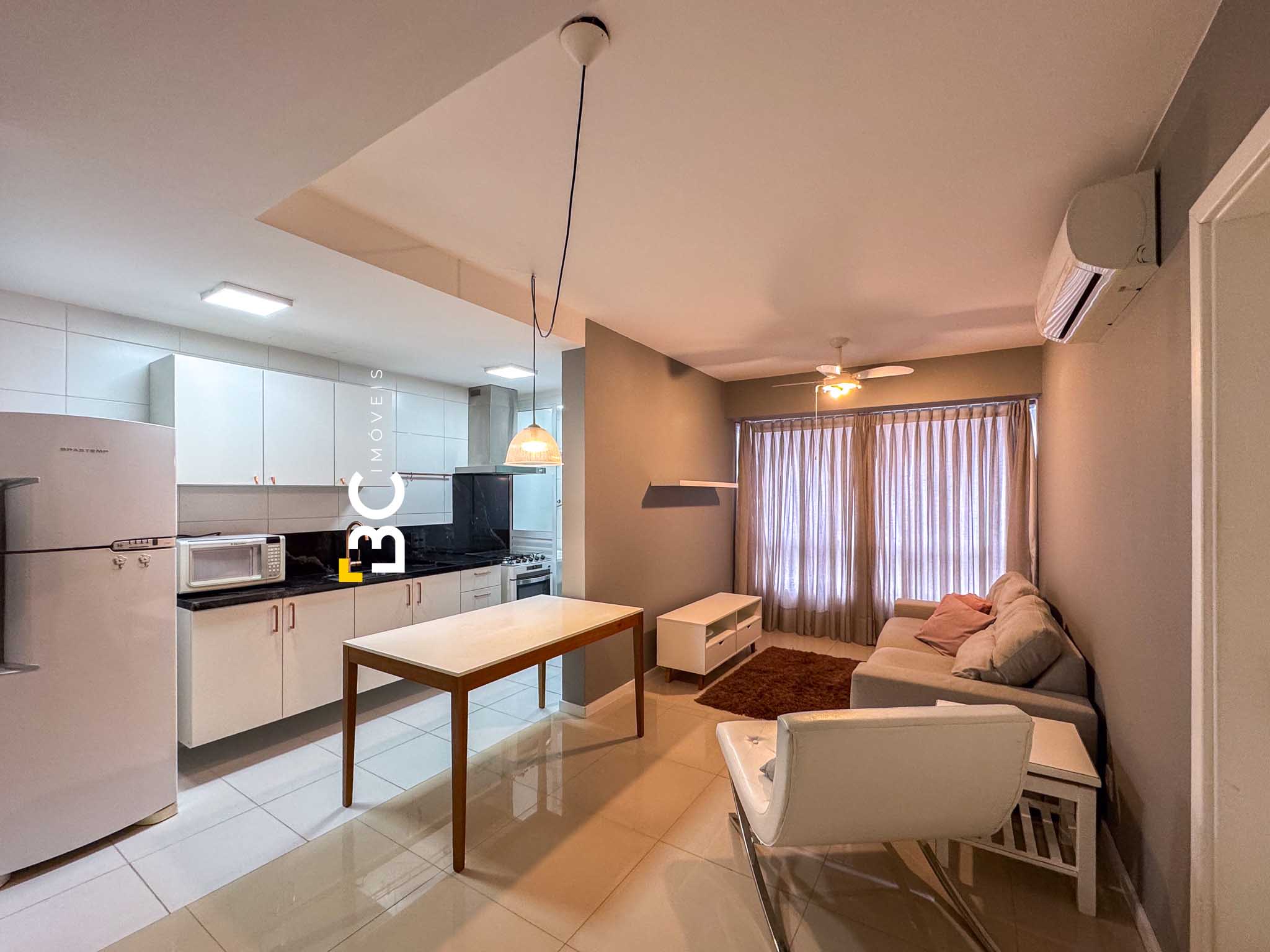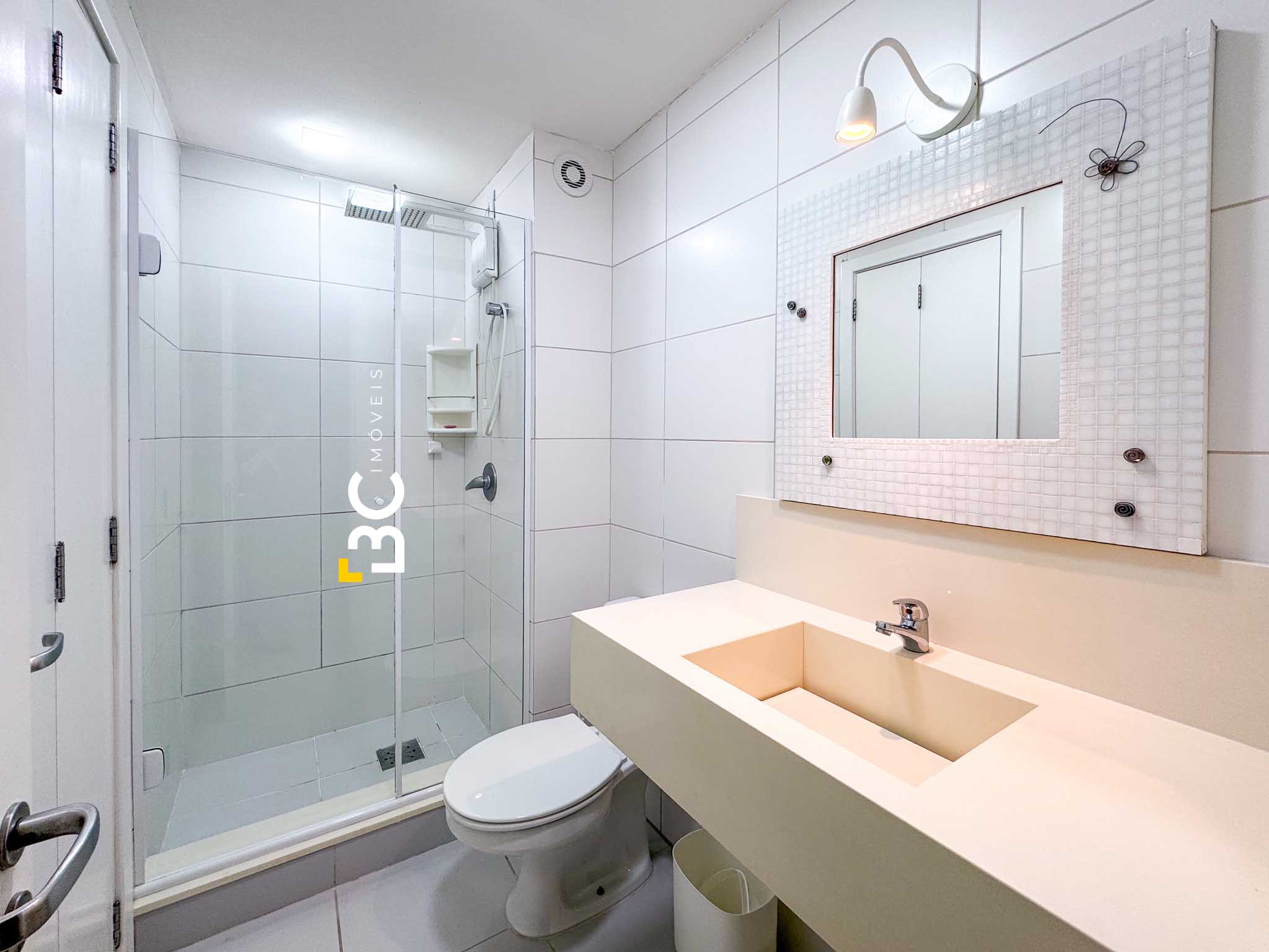 O imóvel possui 44 m² de área privativa e oferece ambiente aconchegante, com 1 dormitório com ar-condicionado, 1 banheiro, living para 2 ambientes (com ar-condicionado), cozinha americana com churrasqueira, área de serviço separada com máquina de lavar – lava e seca. Sua posição frente/lateral, com orientação solar norte/oeste, garante ótima iluminação natural e ventilação.