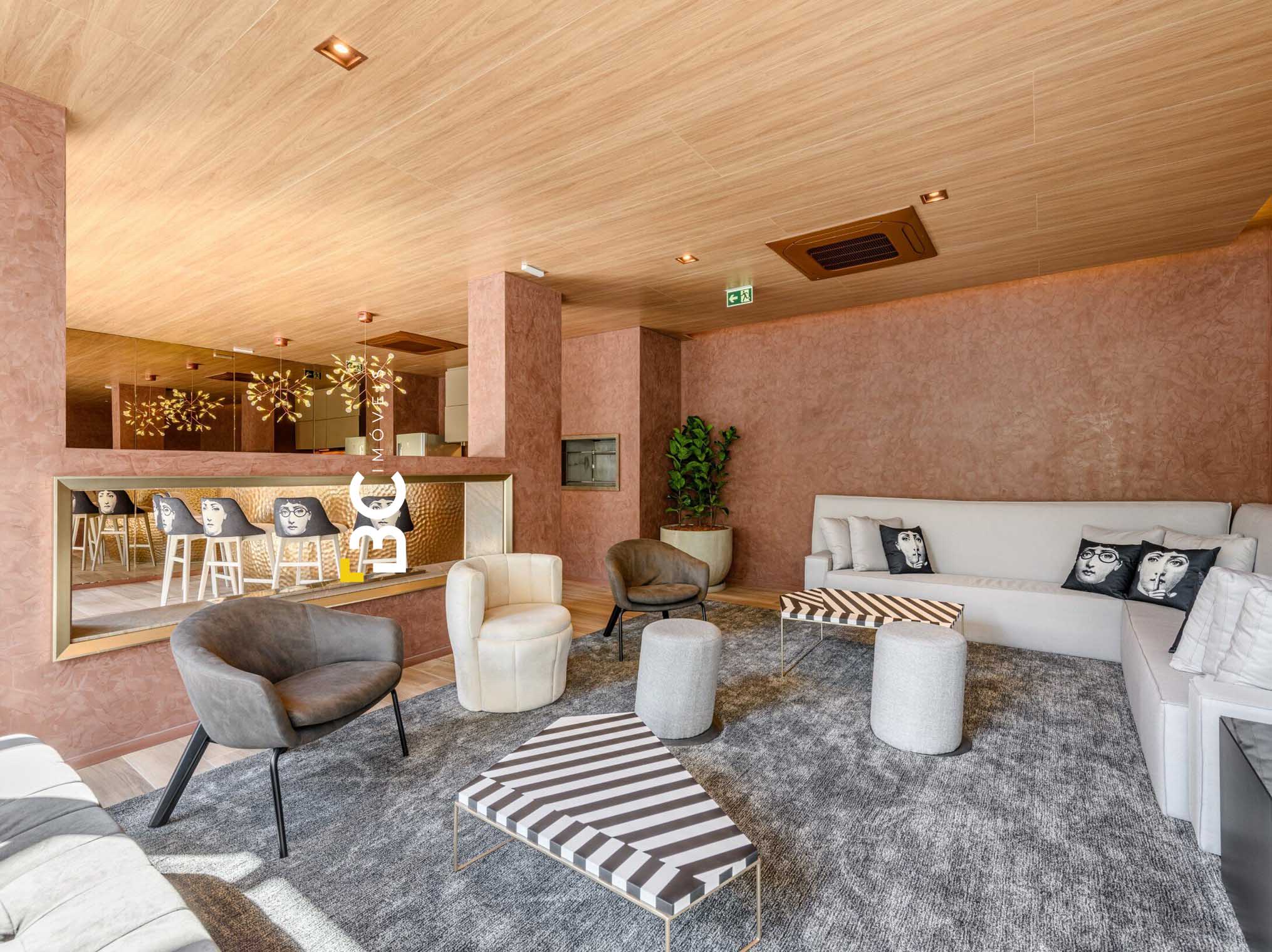 O condomínio dispõe de uma infraestrutura de excelência, incluindo portaria 24 horas, piscina com deck molhado, salão de festas, espaço gourmet com churrasqueira, área fitness, espaço coworking, dois elevadores, lavanderia, lounge, solarium, porte-cochère, estacionamento para visitantes e zeladoria.