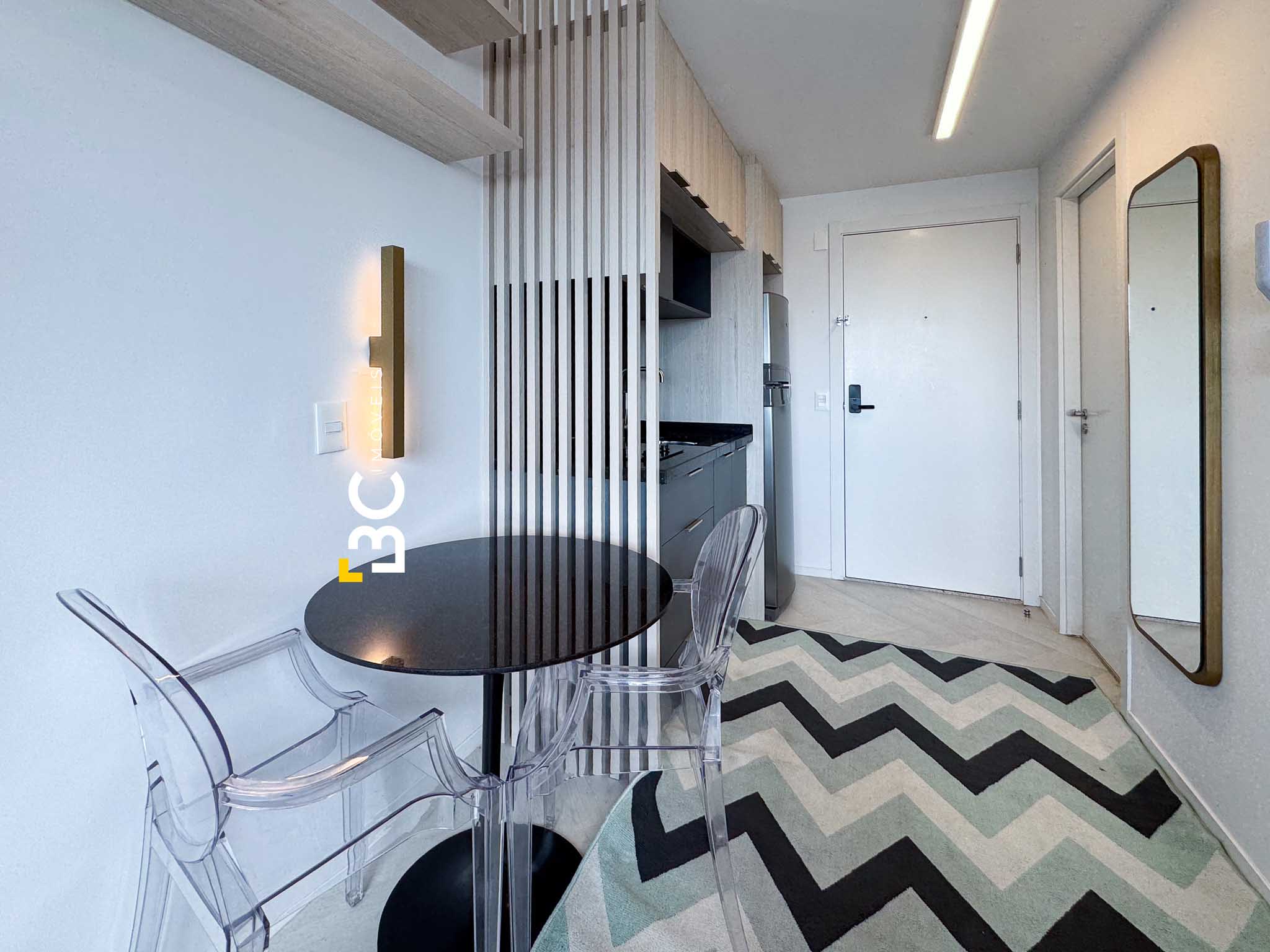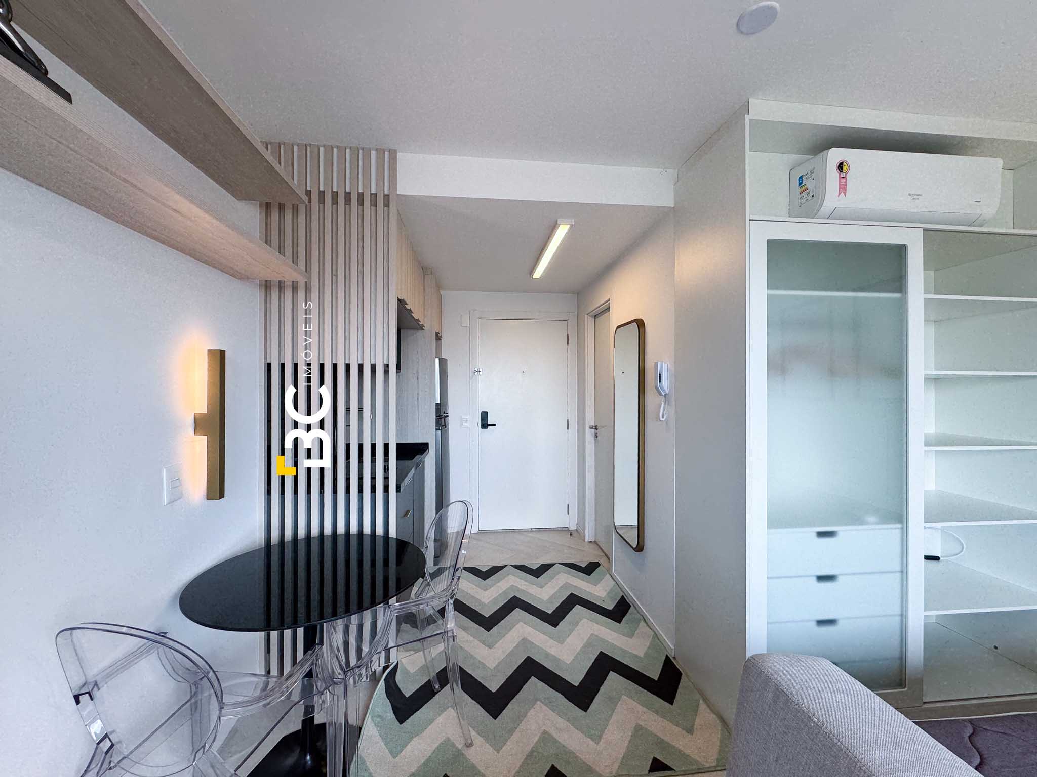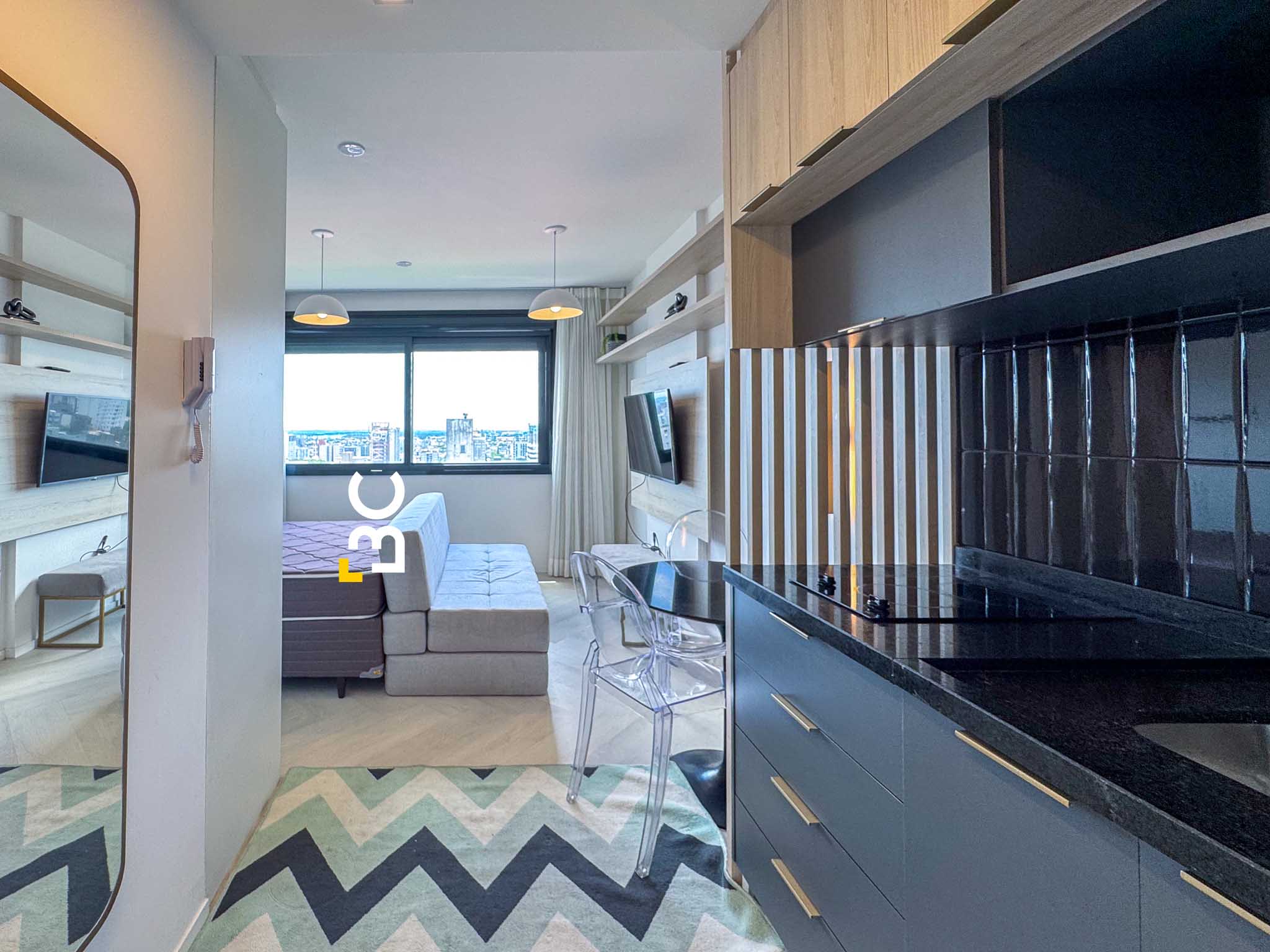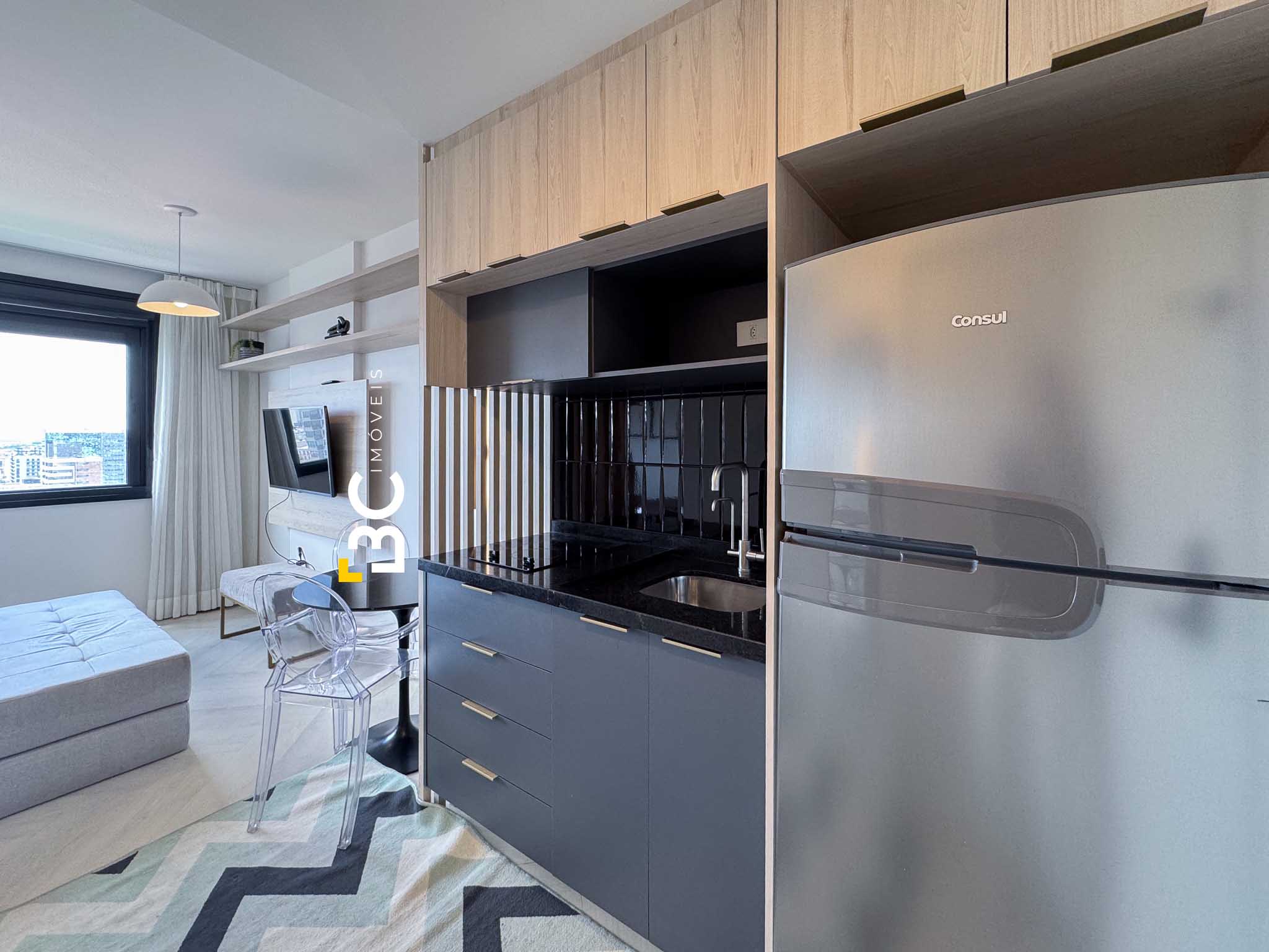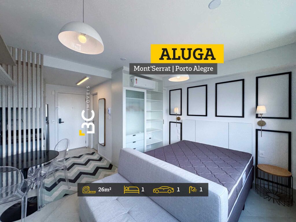 BC Imóveis aluga este sofisticado loft de alto padrão, completamente mobiliado, com 26 m² de área privativa, no bairro nobre de Porto Alegre. O imóvel conta com vista permanente, cozinha completa, ar-condicionado no dormitório e sistema de aquecimento de água por caldeiras. Oferece vaga de garagem rotativa.