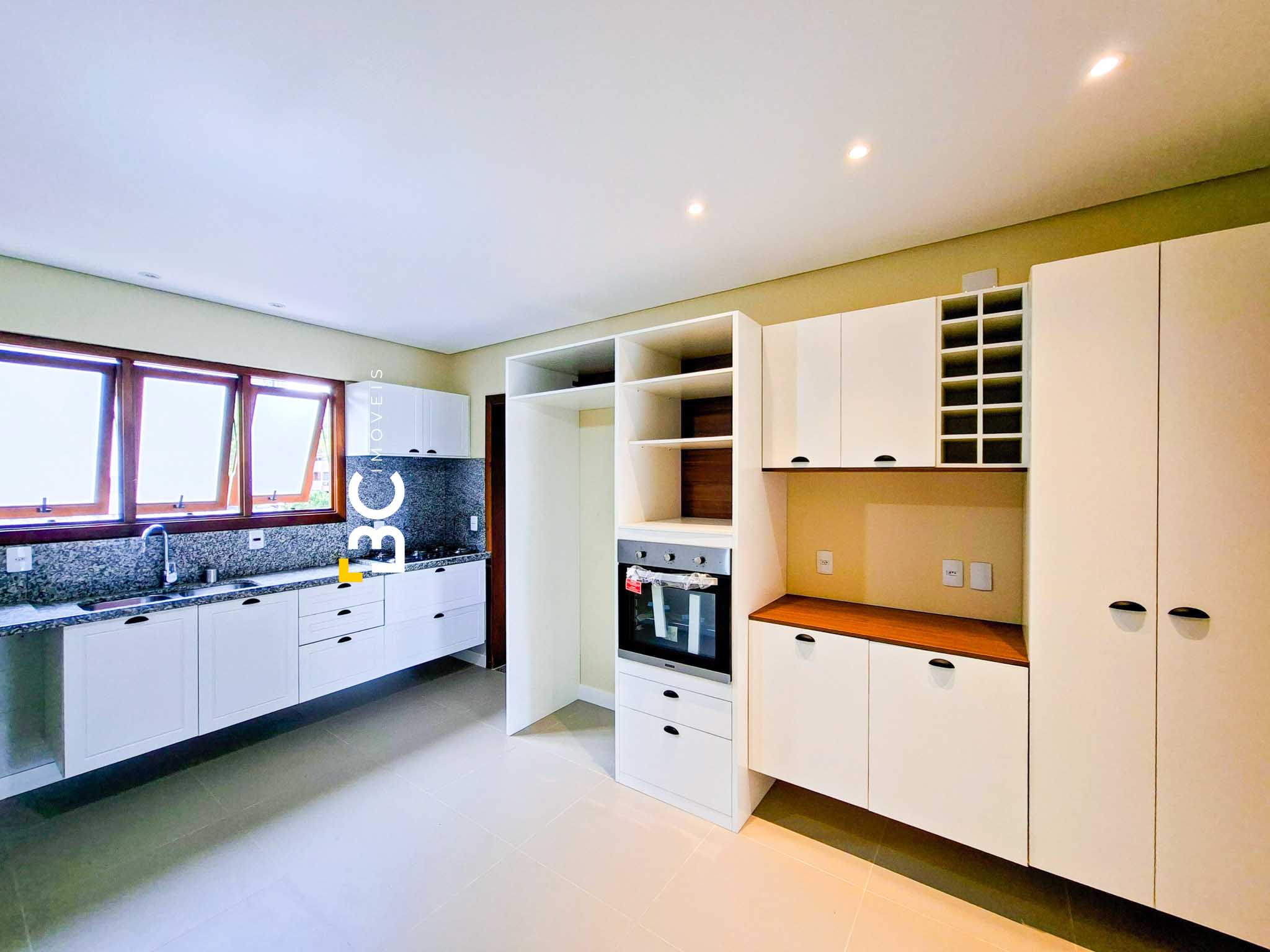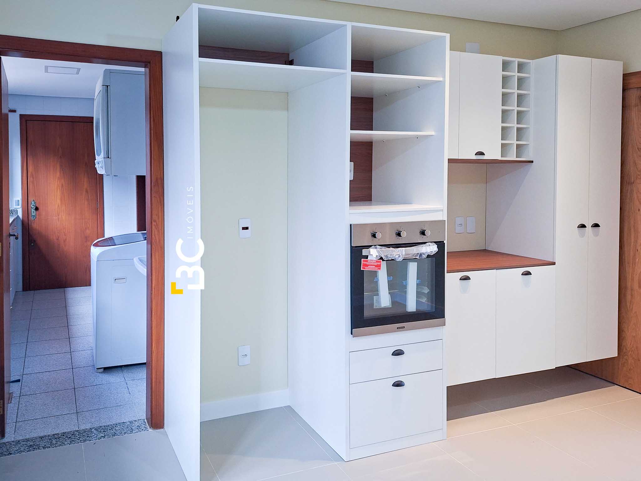 O apartamento dispõe de amplo living com lareira, churrasqueira com espaço gourmet, lavabo e sacada fechada, além de floreiras nos dormitórios. A cozinha é espaçosa, com área de serviço separada e dependência de empregada com banheiro auxiliar.