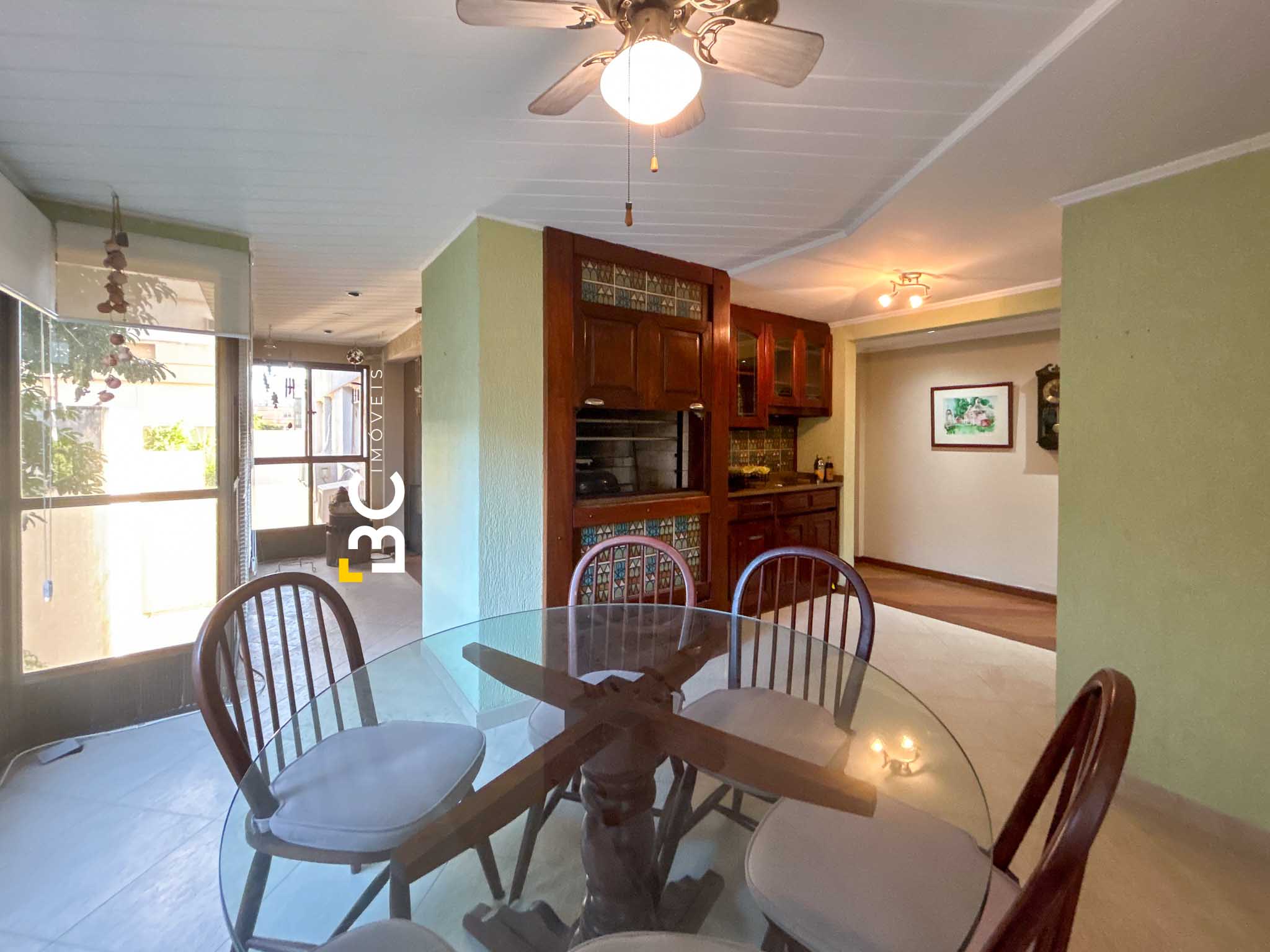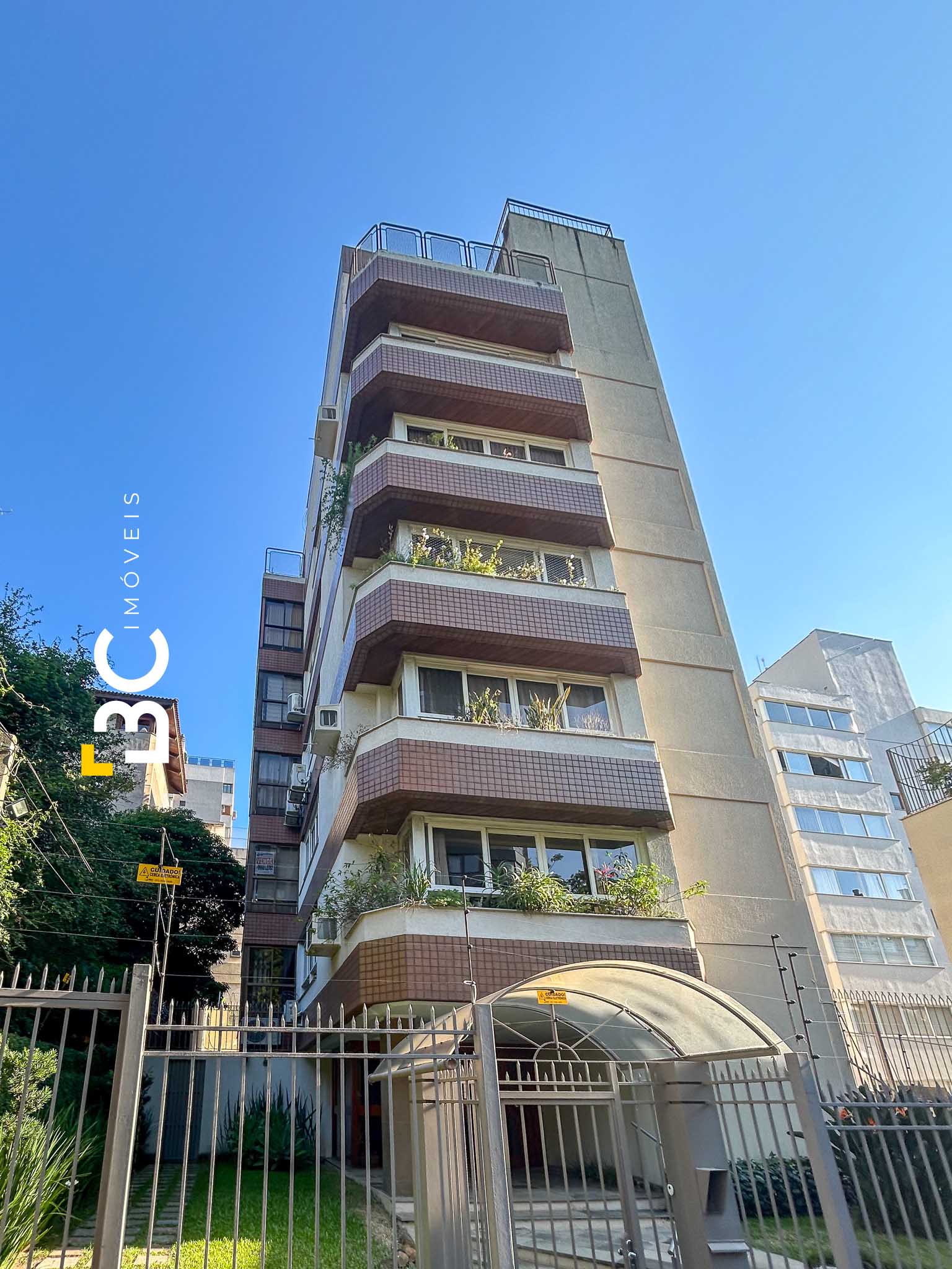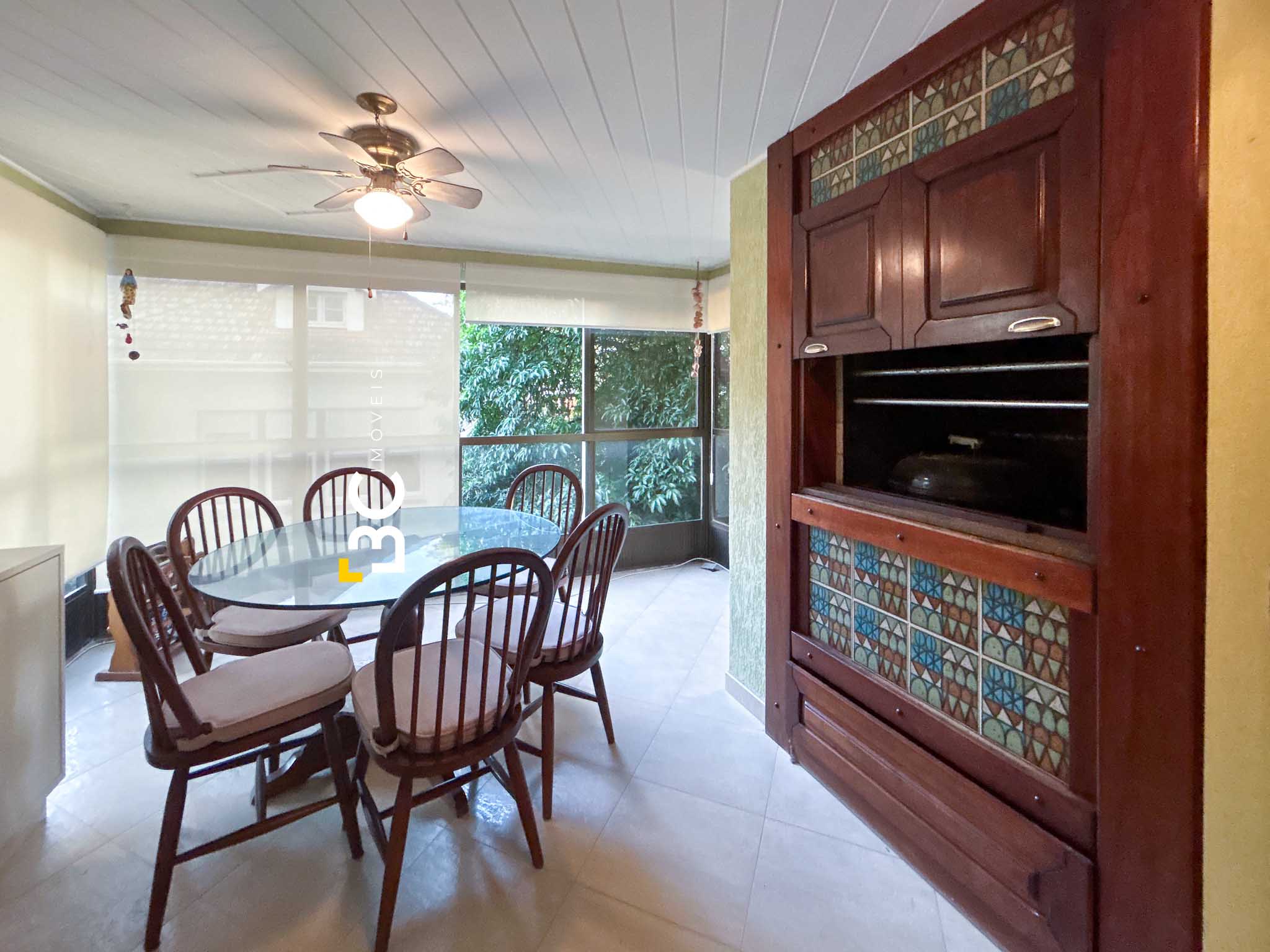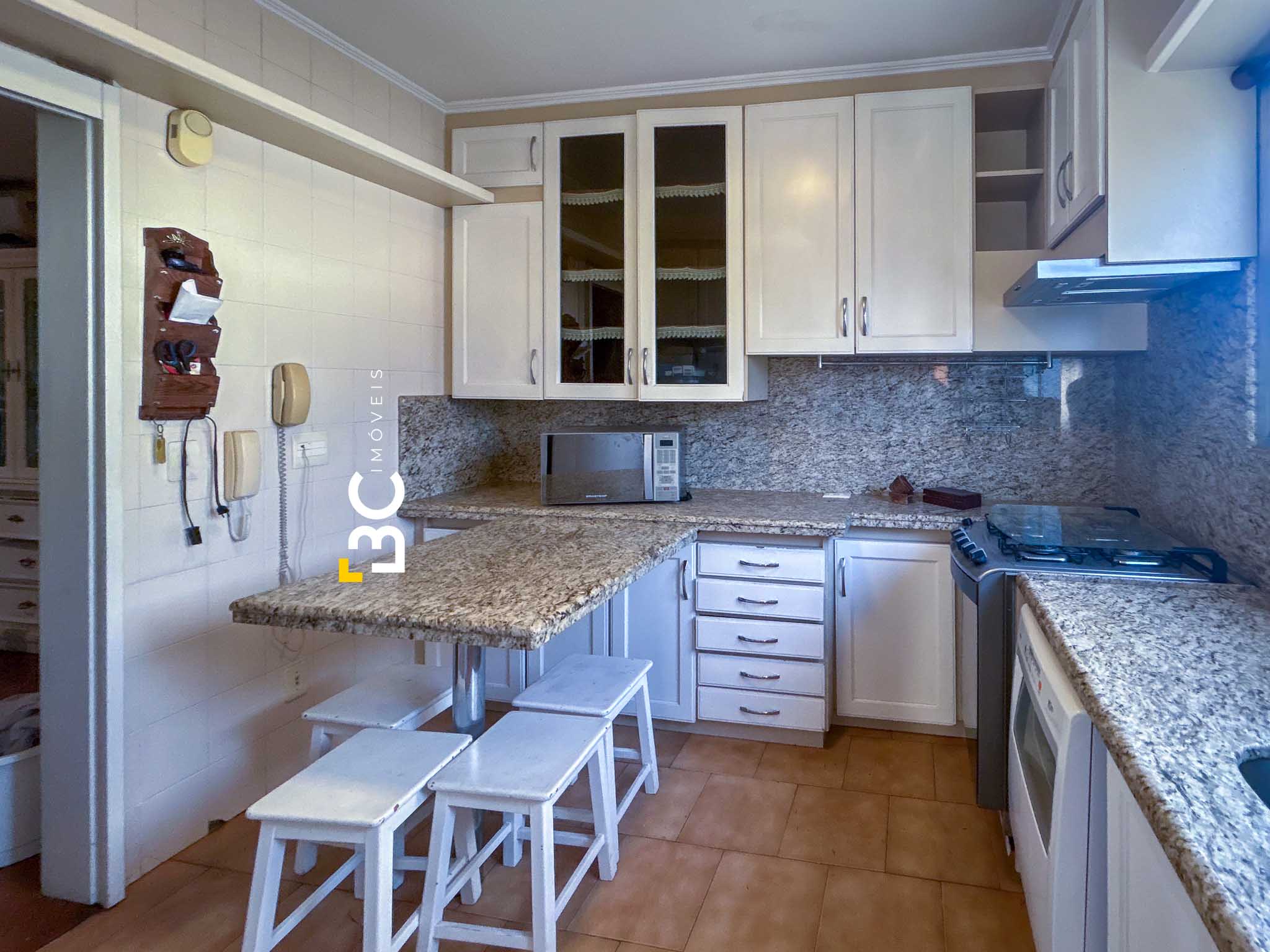 O imóvel conta com living para dois ambientes com lareira, lavabo, espaço gourmet com churrasqueira integrado à sala de jantar, cozinha completa, ampla área de serviço com banheiro auxiliar e entrada de serviço. Na área íntima, são três dormitórios, além da suíte principal. Apartamento bem ventilado, com uma unidade por andar.