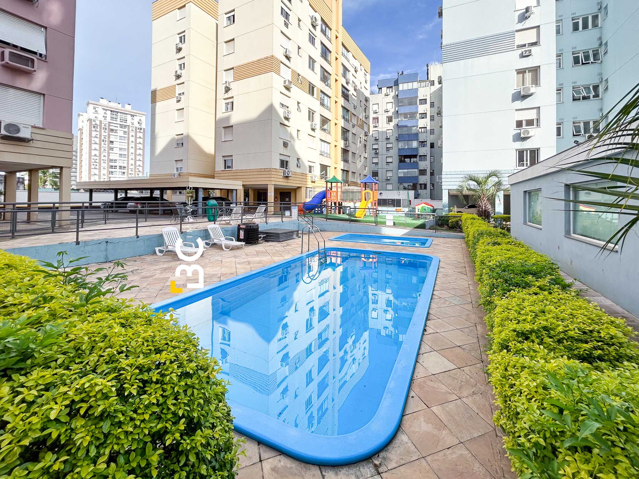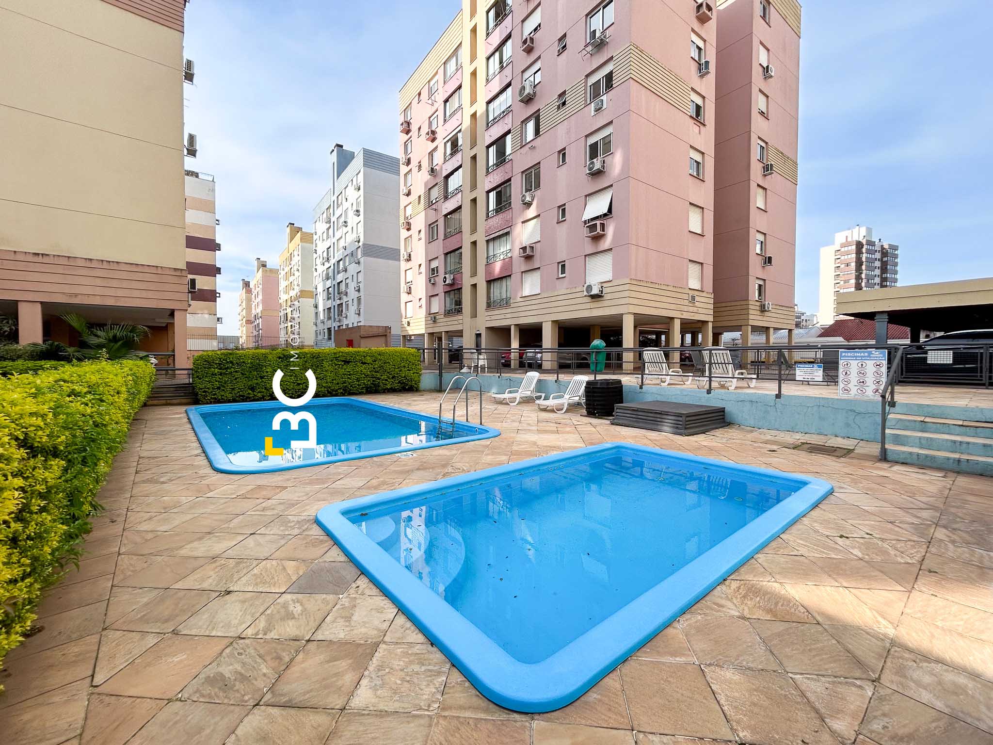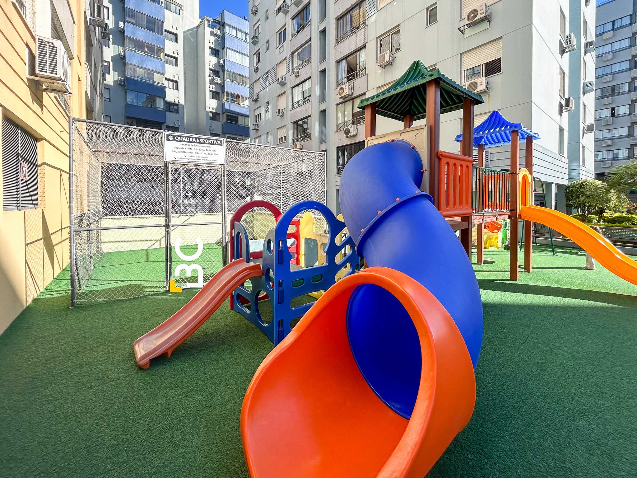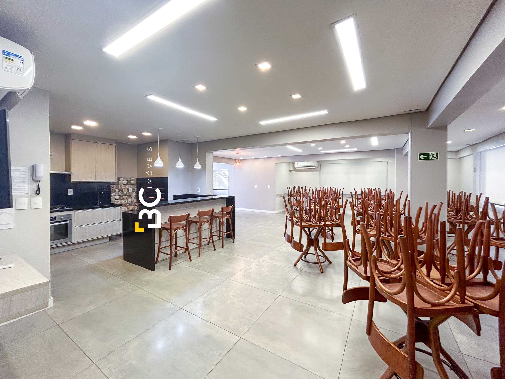 O condomínio dispõe de portaria 24 horas com controle de acesso e uma infraestrutura completa, incluindo salões de festas com churrasqueira, playground, academia, além de piscina adulto e infantil.