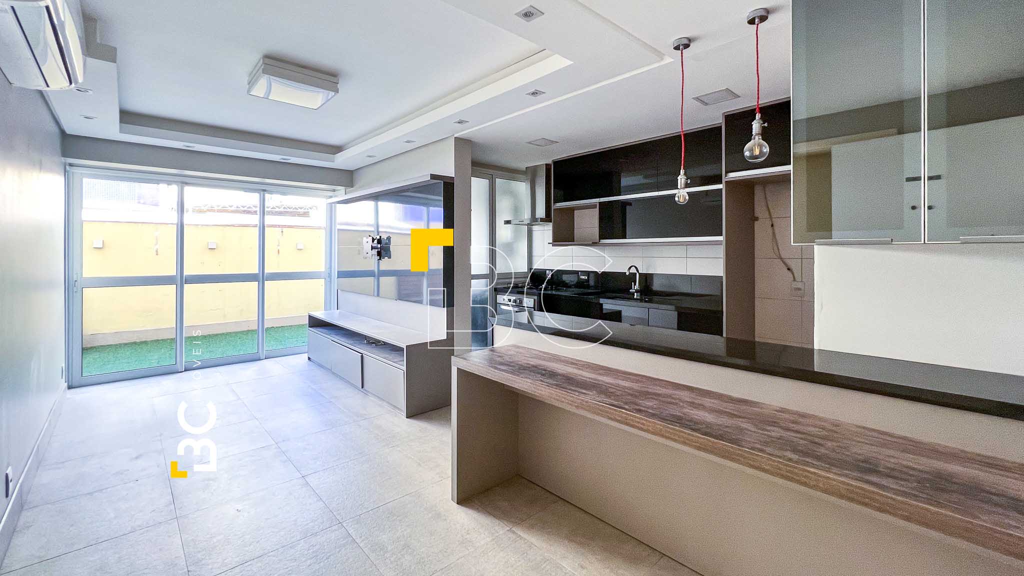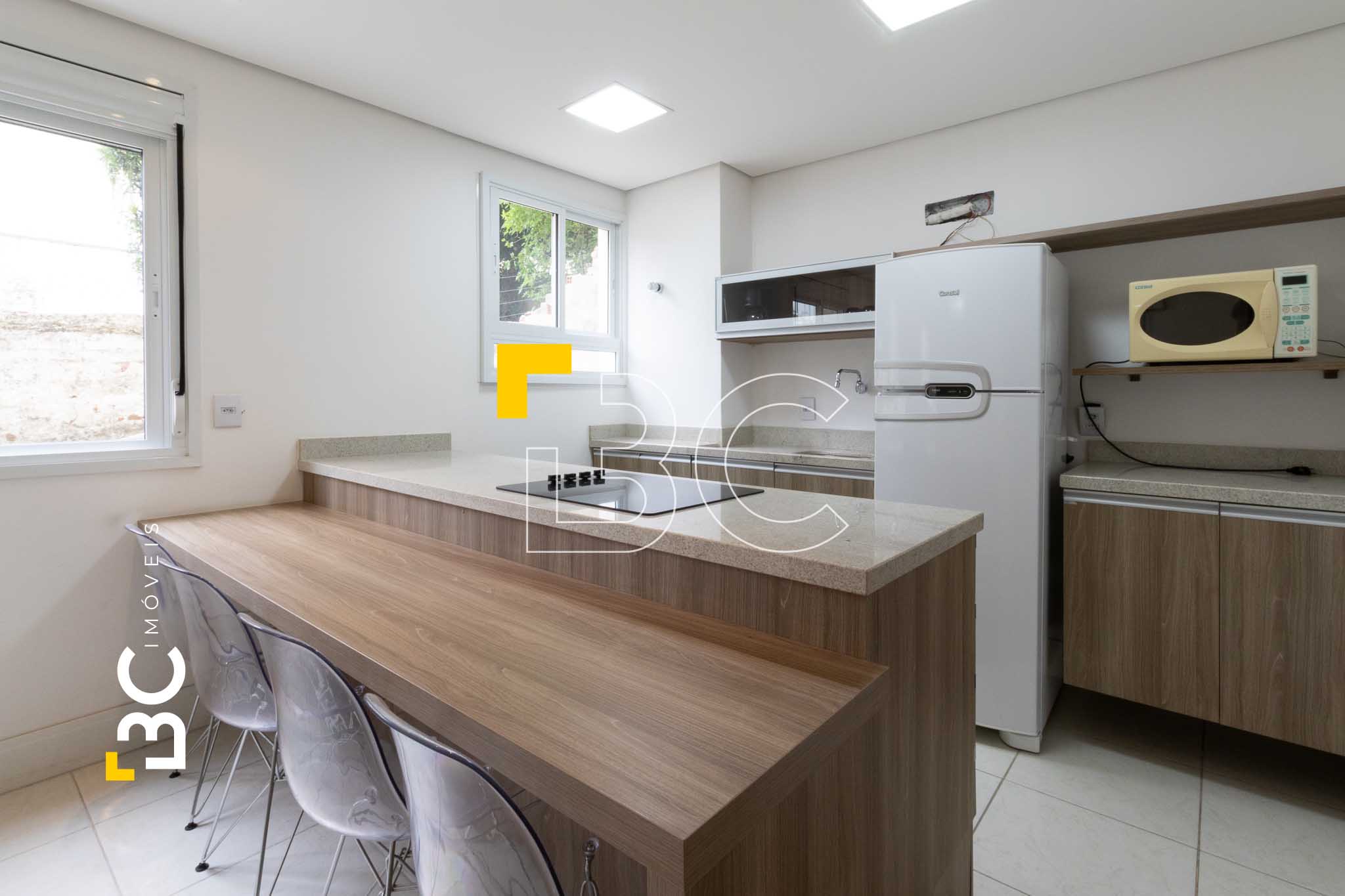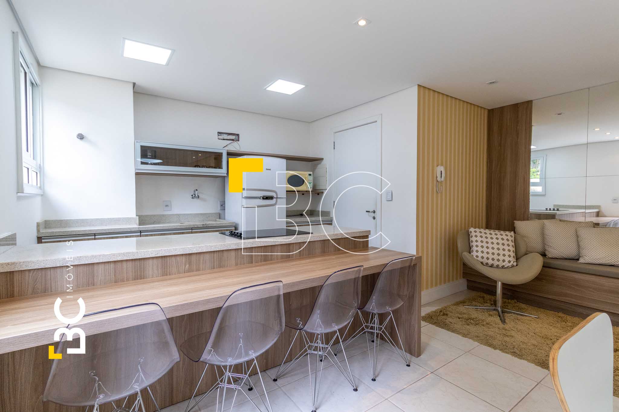 O imóvel, com 68 m² privativos, conta com 1 dormitório, living para dois ambientes integrado a um terraço privativo e arborizado – perfeito para momentos de lazer ou para quem tem pet. A cozinha americana possui churrasqueira, além de área de serviço e sistema de água quente.