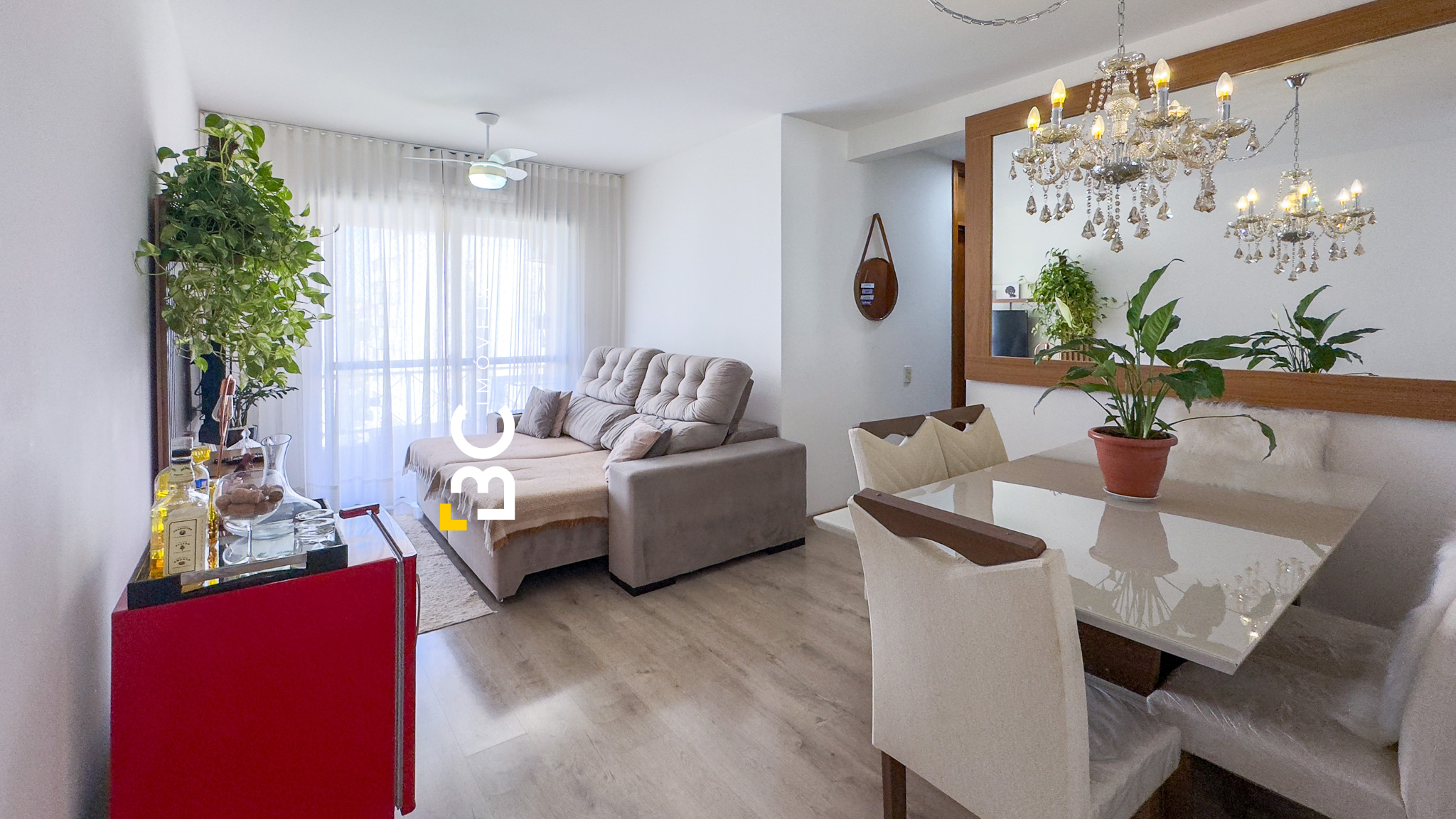 Para maior comodidade, o imóvel será entregue com ar-condicionados, lustres, espelhos e rack. Além disso, a cozinha é nova e moderna, agregando sofisticação ao ambiente.