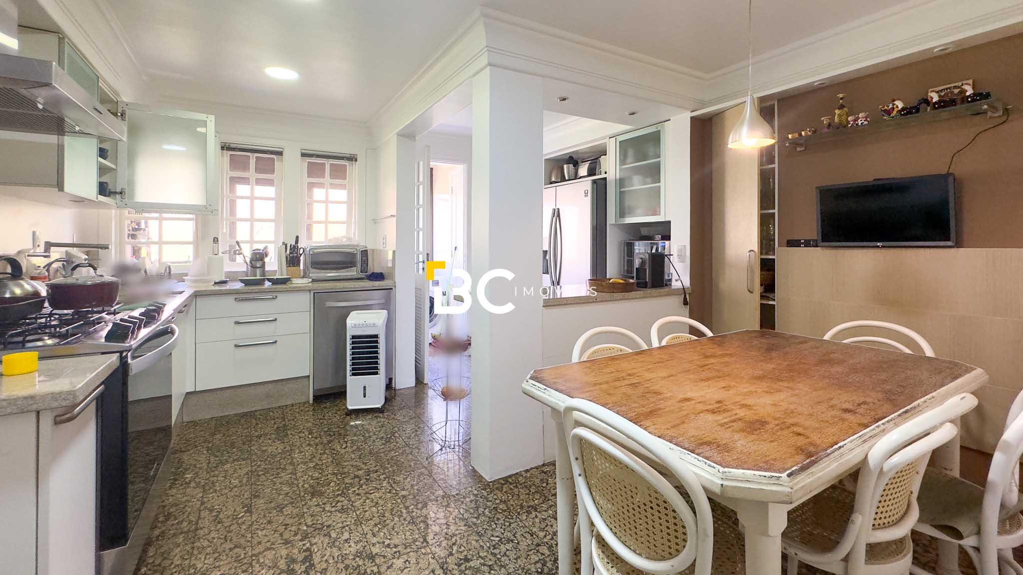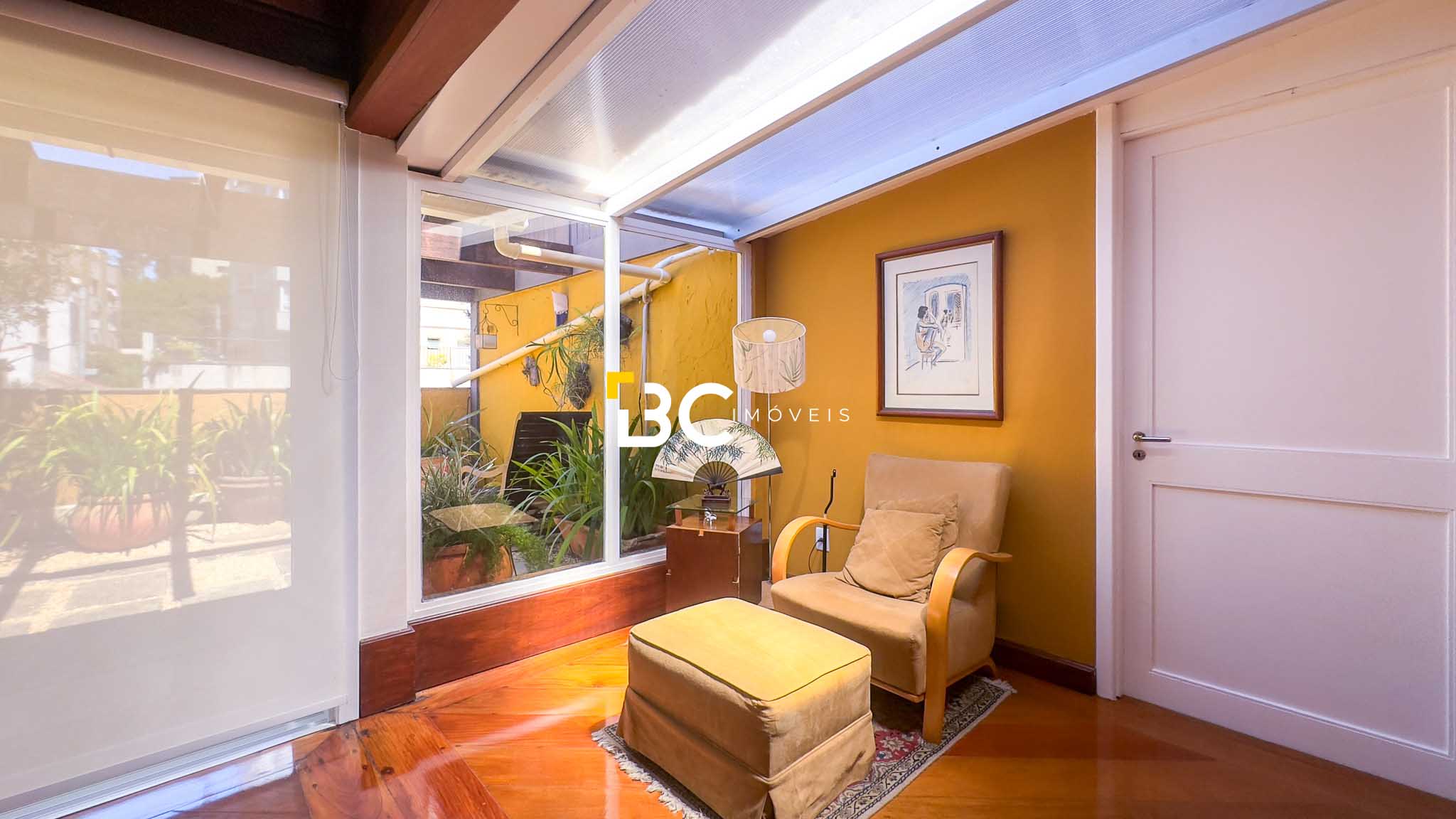 A BC Imóveis apresenta esta sofisticada cobertura duplex de 413 m2, que exala um charme acolhedor de lar. No primeiro piso, destaca-se um deslumbrante living para 3 ambientes, onde a sala de estar proporciona uma vista encantadora para o jardim, enquanto o pé direito alto confere imponência ao espaço. Uma segunda sala de estar, com lareira aconchegante, une-se à sala de jantar, adornada com mobília requintada. Logo na entrada, encontra-se um lavabo, seguido por uma cozinha completa, ampla área de serviço e depósito.