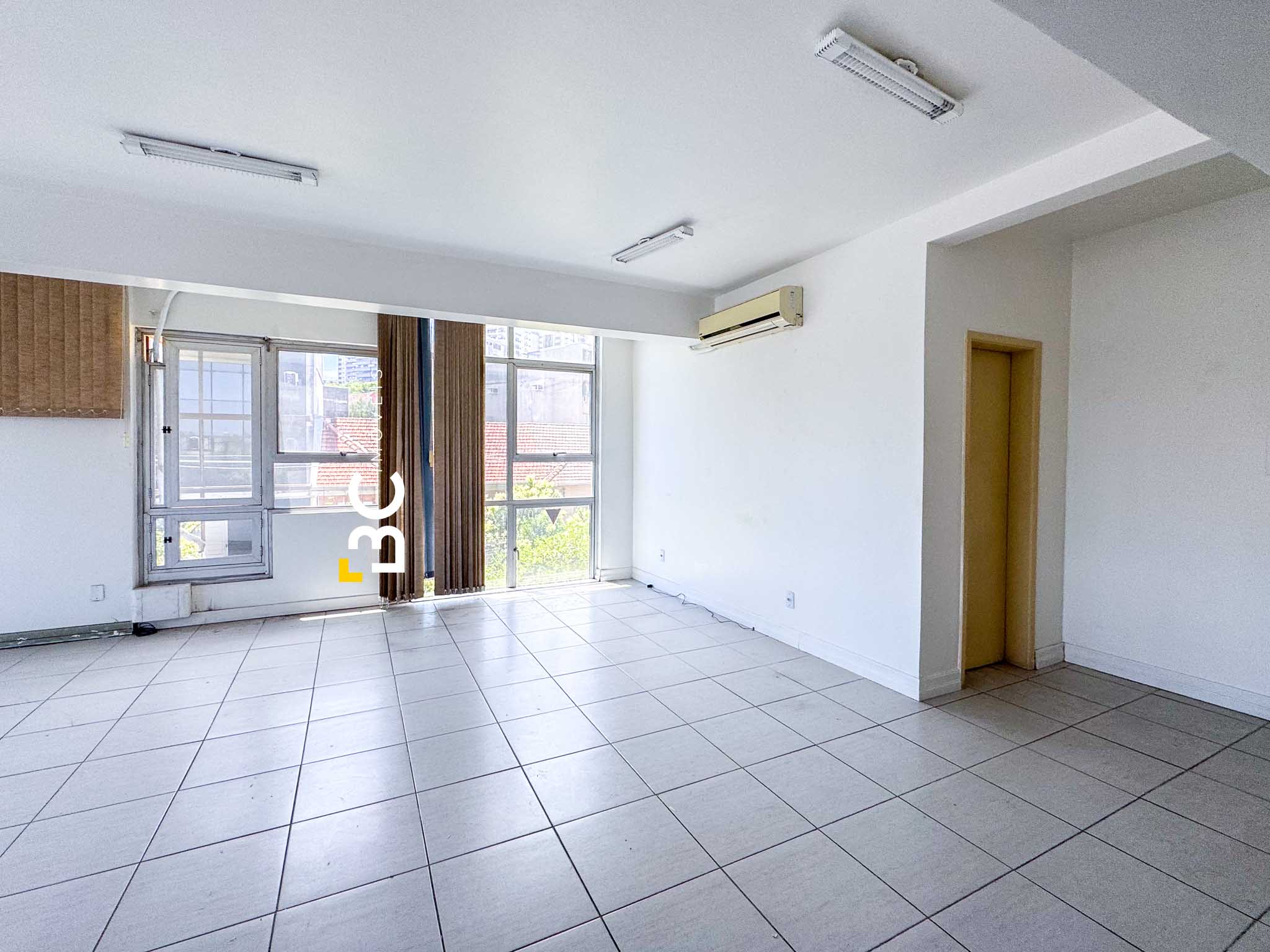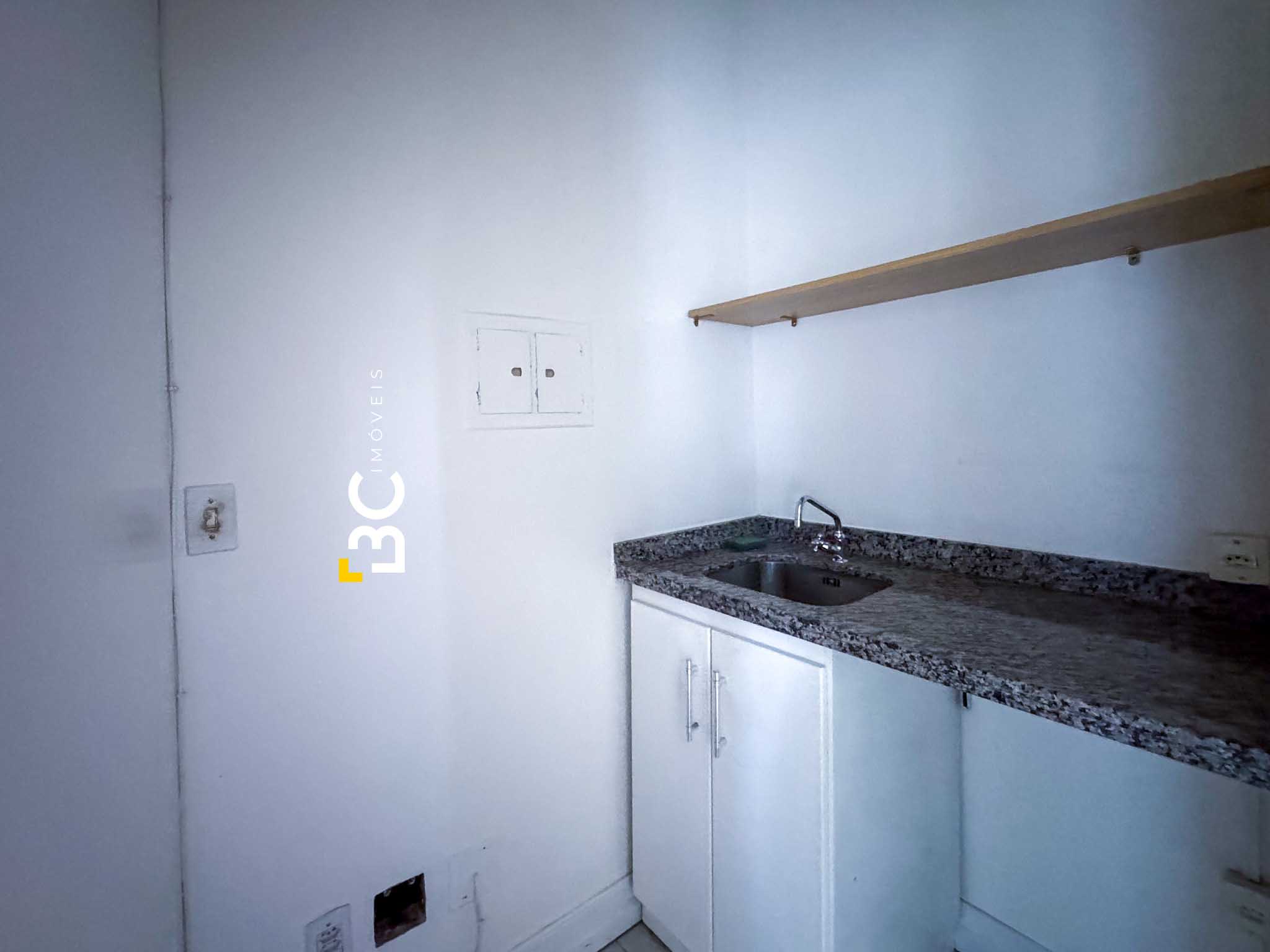 BC Imóveis vende sala comercial de 48 m², equipada com ar-condicionado, copa e banheiro social.